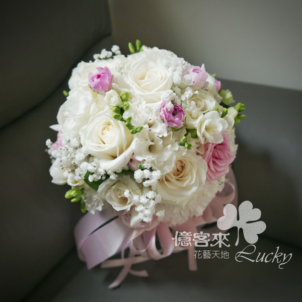 BR01-經典白玫捧花 (附贈一朵同色系新郎胸花)